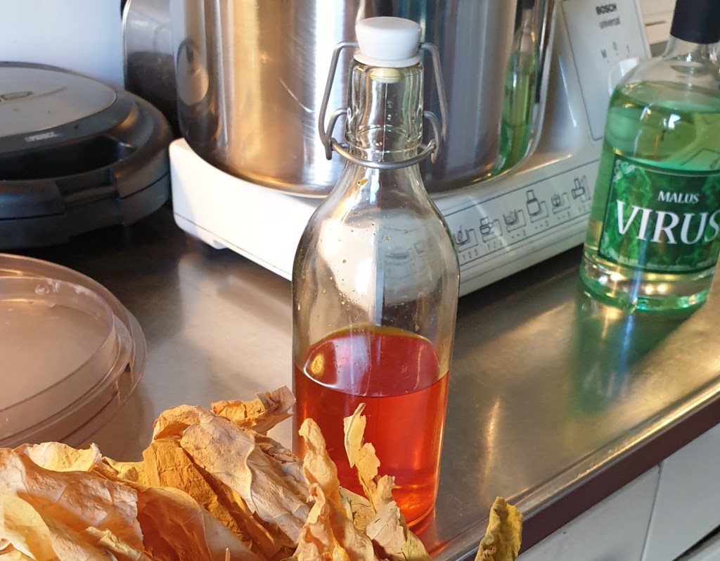 Enligt alla de olika manualer man hittar på nätet skall ”nässelvatten” spädas 1/10 med vanligt vatten, men jag brukar använda betydligt högre koncentration än så. Uppåt 50/50 har ingen tobak jag odlat blivit ledsen av, snarare tvärt om. Tobaksplantor vill ha mycket näring, särskilt kväve. Det enklaste och billigaste sättet är att fylla regntunnor och baljor med brännässlor som får lösas upp 8-14 dagar i vatten. Det luktar inget vidare men innehåller all näring som behövs. Alltså fyller jag de första baljorna med nässlor och vatten samma helg jag planterar ut och börjar använda det redan efter någon vecka.